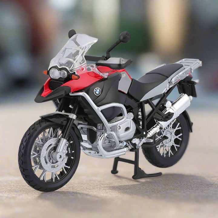 דגם אופנוע ב.מ.וו R 1200 GS בקנה מידה 1:12 (כ-18 ס"מ אורך) עשוי ברזל משולב באביזרי פלסטיק מבית מאיסטו.