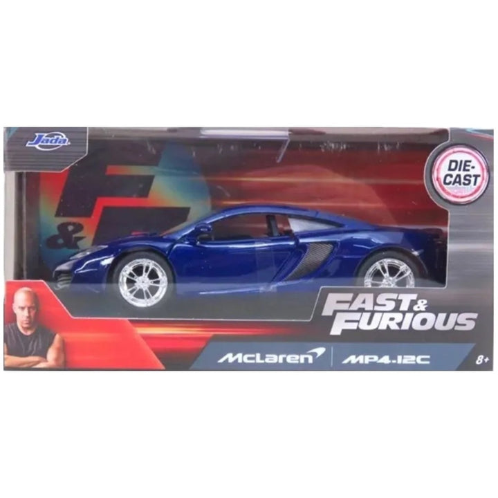 דגם מכונית מקלארן MP4-12C מסדרת מהיר ועצבני בקנה מידה 1:32 (כ-12 ס"מ אורך). הרכבים מבית jada עשויים מתכת יצוקה ומשולבים באביזרי פלסטיק עמיד, עשירים בפרטים ועשויים מחומרים איכותיים וצמיגי גומי פרימיום. לגילאי 8 ומעלה.