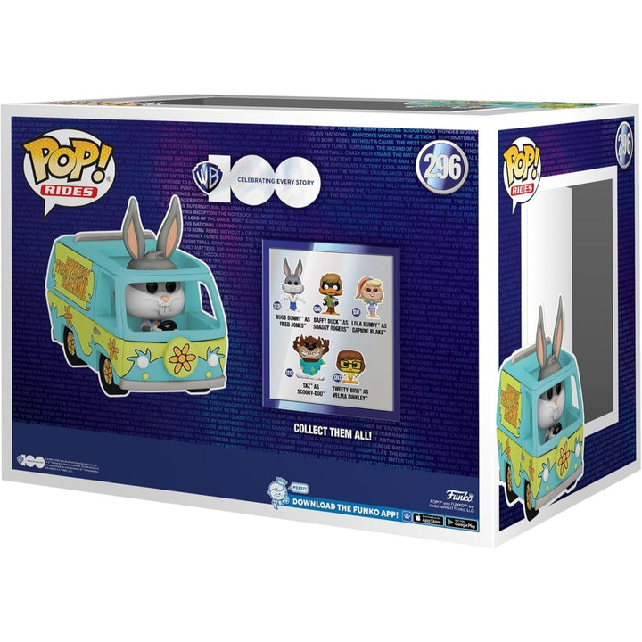 בובת פופ ריידס באגס באני דלוקס (6 אינץ' | כ-15 ס"מ אורך) ברכב ואן המסתורין של סקובי דו מסדרת פופ ריידס מהדורת חגיגות 100 שנה לוורנר ברוס.