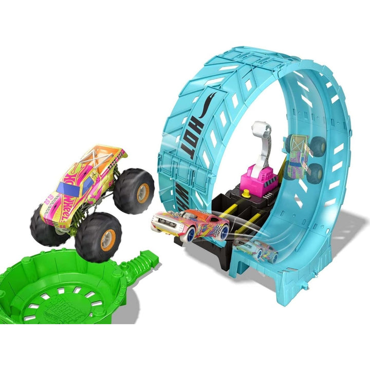 זהו אתגר מרוץ אפי עם סט Hot Wheels Monster Trucks Glow in the Dark Epic Loop Challenge שהופך למרגש עוד יותר כשהאורות כבים! חלקי המסלול בכחול, ירוק וצהוב זוהרים בחושך ומאירים את האקשן על המסילה. שגרו רכבים זה לצד זה כדי להתחרות סביב הלולאה, לקפוץ אל גביע הניצחון ולתבוע את הזכייה! הסט כולל מאנסטר טראק של הוט ווילס ורכב בקנה מידה 1:64 מוכנים לפעלולים ולהתנגשויות ישר מהקופסה וגם הם זוהרים בחושך!