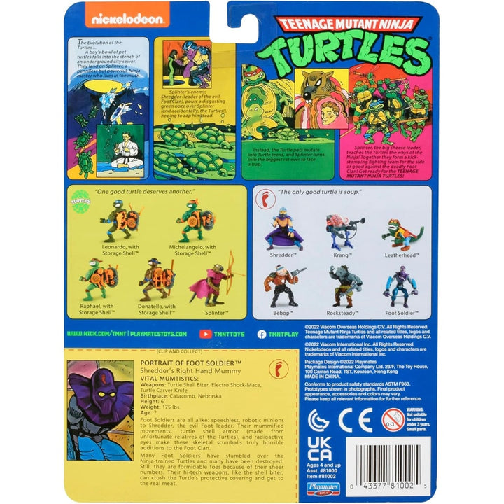 שגעון הצבים חוזר עם סדרת צבי הנינג'ה הקלאסית מבית Playmates Toys! פוט סולג'ר הקלאסי בגובה 10 ס"מ, עם 7 נקודות תנועה שמאפשרות תנוחות קרב מלאות אקשן! לוחמי הרגל כולם נראים אותו דבר, משרתים רובוטיים וחסרי מילים של שרדר המרושע. עם תנועות חנוטות, שריונות דמויי שריון צב (עשויים מקרובים פחות ברי מזל...