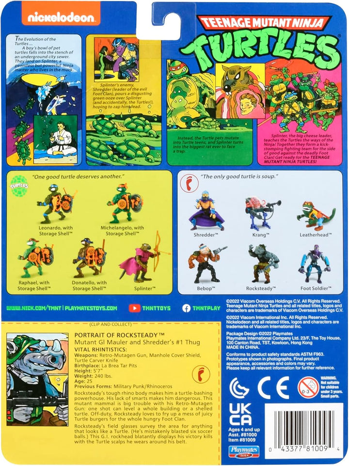 בובת רוקסטדי קלאסית 10 ס"מ כולל אביזרים צבי הנינג'ה | Teenage Mutant Ninja Turtles Original Classic Rocksteady Action Figure